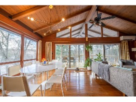 A four bed, three bath updated mid century cabin on 105 acres perched on a hillside between Ellenville and Mountaindale, NY, the "gateway" to the Catskills. Expansive 3,400 sq ft home across 3 levels, great for one or two families with a wood-burning fireplace, 3 living rooms and access to the outdoors from every room. Enjoy the endless wooded views and privacy with all the conveniences of town within 7 mins.