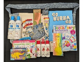 Custom Rockin' Locks Salon tote, Kid made Modern Craft kit, Make your own toothfairy keepsake box, Book, Fairy Tales Rosemary Repel Shampoo, Conditioner and Detangling Set, Mini Puzzle, Coconut Oil infused comb, bouncing balls, keychain, Kid Safe Study Time roll on oil, lollipops.