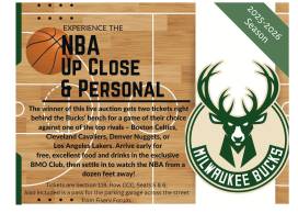 This package includes two (2) COURTSIDE tickets to a Milwaukee Bucks game versus either the LA Lakers, Cleveland Cavaliers, Boston Celtics, or Denver Nuggets NEXT SEASON. Tickets are located in section 118, row CCC, seats 5 and 6, and located right behind the Bucks bench!