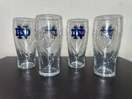 Rudy Ruettiger Notre Dame Fighting Irish Autographed Gold Shamrock Riddell Speed Mini Helmet. Authenticated by Fanatics. Inlcudes four (4) Notre Dame 20 oz. Guiness Pint Glasses