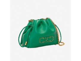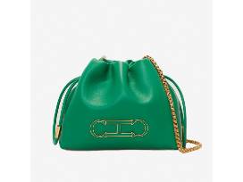 CH Carolina Herrera's Initials Insignia Soft Bucket Bag in green is handcrafted in Baobab leather, with a subtle natural grain, and detailed with a distinctive ornament replicating CH Carolina Herrera's anniversary bracelet. Finished with a strap, it can be worn crossbody or over the shoulder. No returns or exchanges.