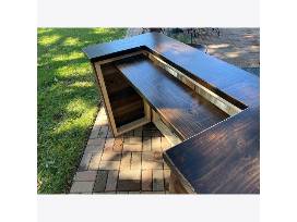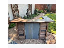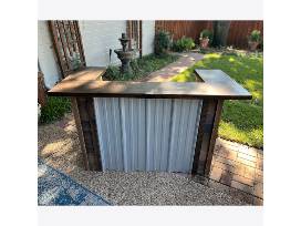 5-foot mobile bar by Backyard Mansions. Ideal for patio or gameroom use. 5-foot bar top and 4-foot serving shelf on sturdy casters. No returns or exchanges.