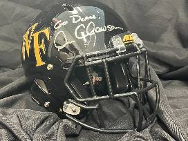 Celebrate North Carolina sports with four Greensboro Grasshoppers tickets, Wake Forest football helmet signed by Dave Clawson, four Winston-Salem Dash club wing tickets, a signed Carolina Hurricane's Seth Travis photo, and a signed Charlotte Hornets Nick Smith Jr. photo-a slam dunk for any local sports lover.