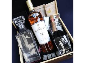 Sip Macallan 12-Year-Old Scotch whisky in style from your Royal Reserve whisky decanter set-featuring 2 whisky glasses, 2 stone coasters, a decanter, stone ice cubes, and recipe cards. Round out the evening by lighting up a classic, medium-bodied Romeo y Julieta or an earthy, full-bodied Punch Signature. Ideal for connoisseurs or your home bar upgrade.