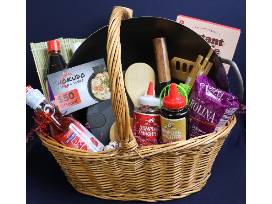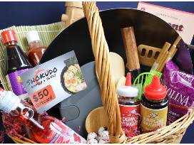 Improve your stir fry recipes with this 14" Hammered Wok, paddle, rice, and various sauces, and wash down your Asian-inspired meals with assorted Bubble Tea kits. Leftovers? No problem! Store them in the Porter ceramic lunch bowl. Once you've had your fill of at-home cooking, enjoy a sushi dinner at Shokudo Ramen & Sushi in Paramus with a $50 gift card.