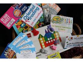 There's something fun for everyone in this basket. Test your skills with $100 to a MarbleJam instructed art experience, complete with an art kit. Discover the magic of color with 2 tickets to Crayola Experience in Easton, PA. Take a cooking class at the Flavor Labs (Norwood/Paramus). Learn how ice cream is made with 4 tickets to the Turkey Hill Experience in Lancaster County, PA. Enjoy 2 tickets to Urban Air in South Hackensack, 2 free races at RPM Raceway in Jersey City, and $25 to Dave & Buster's. Grab a crew of up to 6 for an exciting game of paintball at Skirmish Paintball in the Poconos. Buy toys or craft supplies with $25 off an Oriental Trading Company order, and stay busy with colorful magnetic blocks and a sweet cupcake puzzle.