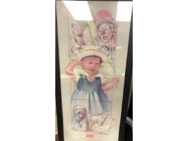 1This piece of artwork commemorates Karnival for Kids in a black framed beautiful drawing.