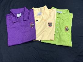 1Three women's, size Medium, Carnival Memphis Golf Shirts in Lime Green, Yellow, and Purple.