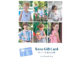 A Little English $200 gift card to be used online at littleenglish.com. Can be used on gift or apparel items through the website.