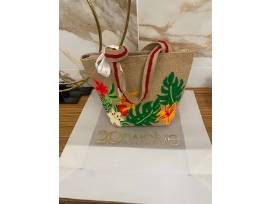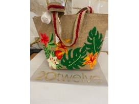This tote is beautifully embroidered with tropical flowers and greenery from 20Twelve.