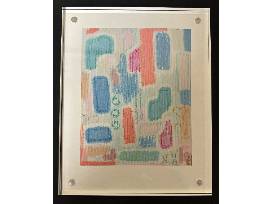 Abstract Print- 'Fern' in 8x10 magnetic acrylic frame. Stands up-not to hang. Colors include blues, pinks, tan and green.