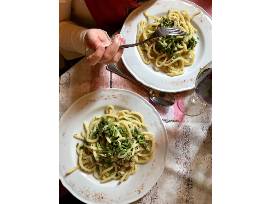 wines from one of the most iconic wine regions in the world. You will conclude this delightful tasting with a special bottle of Tuscan wine, reserved especially for our guests. Guests will savor a multi-course farm-to-table dinner at a beloved Cortonese eatery, expertly paired with Tuscan wine and prosecco. Your experience starts with an antipasto appetizer course, followed by a primo (typically a pasta course), after which comes the secondo, or meat course, and finally, the dolce, or dessert. An aperitivo drink of Prosecco followed by an excellent local wine will also be served.