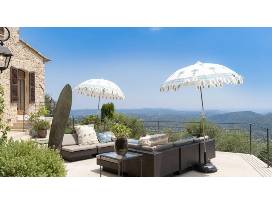 Located on the border between the French Riviera and the Alps, and featured in numerous design magazines, including French Vogue and GQ France, this 200-year old stone built villa is set on two private acres that provide peace and privacy, yet the location is within a five minute walk to the nearest village and an easy drive to the beaches at Cannes (35 minutes), Nice (45 minutes), Antibes (30 minutes) and Monaco (65 minutes). The villa has large terraces, ocean views, ancient olive groves and vistas across the hills to the Grasse and the mountains beyond. The Nice Cote d'Azur Airport is 45 minutes drive from the villa.