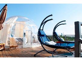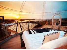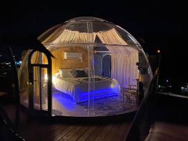 Perched on the highest hilltop in the area and with stunning 360 degree views of the Texas Hill country, your glamping accommodation is a luxurious clear dome that overlooks Lake LBJ and Lake Marble Falls. Sleep under the stars in your suite that has a king sized bed, a private bathroom, an indoor and outdoor shower and an outdoor "star soaking" tub on the large private deck. The resort is an easy one hour drive from Austin, and your time here will be relaxing and unique!