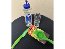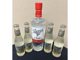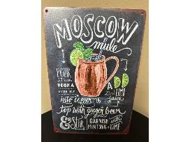 0This basket includes a cutting board, vodka, glasses, measuring cups for pouring, mixture spoons, bar tending materials, an Art of Mixology book and a Moscow Mule sign.