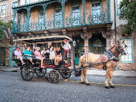Tour historic Charleston, SC on a carriage pulled by a 2000 pound draft horse. Their top tier Palmetto Guild certified guides lead the carriage ride for a most entertaining and accurate tour. Choose either a 40 minute Haunted Carriage Tour or 1 hour Historic Charleston Carriage Tour for two adults. Must use by 10/18/26.