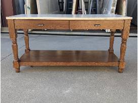 Topping the piece is a polished slab of Chami Gold marble-naturally cool and ideal for rolling dough, shaping pastry, or setting out a spread for guests. Whether used for baking, prepping, or gathering, this table invites connection, generosity, and the shared joy of good food.