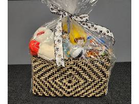 We know that dogs aren't pets; they're family. Treat your pup to this fun basket of toys and treats. This basket includes Life is Good Sprinkler Splash Mat (s/m), Nerf frisbee, Chuck It Fetch Medley, Toy Box Pull & Tug Shark, Giant Lamb Chop, ZippyPaws Monkey & Banana Burrow toy, ZippyPaws Jumbo Donutz, Outward Hound chew sticks, Bully sticks, and Caledon Farms chewy lamb sticks. This basket also includes something for you - dog bone & paw cookie cutters and Greenbone waste bags.