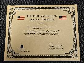 This is an official 5 x 8 U.S. Flag flown over our nation's Capitol on May 1, 2025 at the request of the Honorable Mark R. Warner, United States Senator in honor of the 10th anniversary of the Richmond Cattle Baron's Ball. Whether you want this for your office or you'd like to give it to a history buff, this flag is a unique keepsake for the patriot in all of us. Also included is a certificate from the Architect of the Capitol.