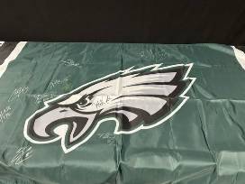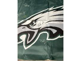This Philadelphia Eagles flag is personally autographed by Brian Dawkins and 10 other celebrity players.