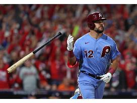 This game model bat is personally autographed by Philadelphia Phillies slugger Kyle Schwarber.