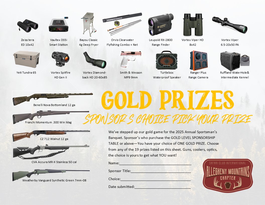 Welcome to the Allegheny Mountains Chapter of Safari Club International's 25th Annual Sportsman's Banquet!