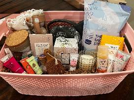 Complement your facial with the Elegant Indulgence Spa Basket, a beautifully curated collection of self-care treasures designed to soothe, restore, and elevate your at-home spa ritual. This luxurious ensemble includes Voluspa candles, Beekman heel balm, Crabtree & Evelyn hand creams, and Pedi Moments spa treatments in Jasmine Soothe and Mango Delight, along with artisan bath and body accents for the ultimate pampering escape.
