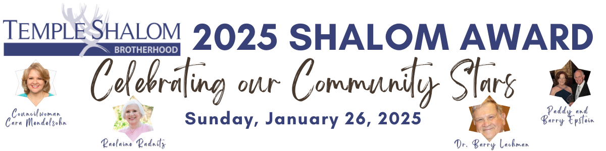 The Temple Shalom Brotherhood is celebrating stars in the Temple Shalom and Greater Dallas Jewish community Sunday, January 26, 2025 during the Shalom Awards. This will be the 17th presentation of the Temple Shalom Brotherhood Shalom Award.