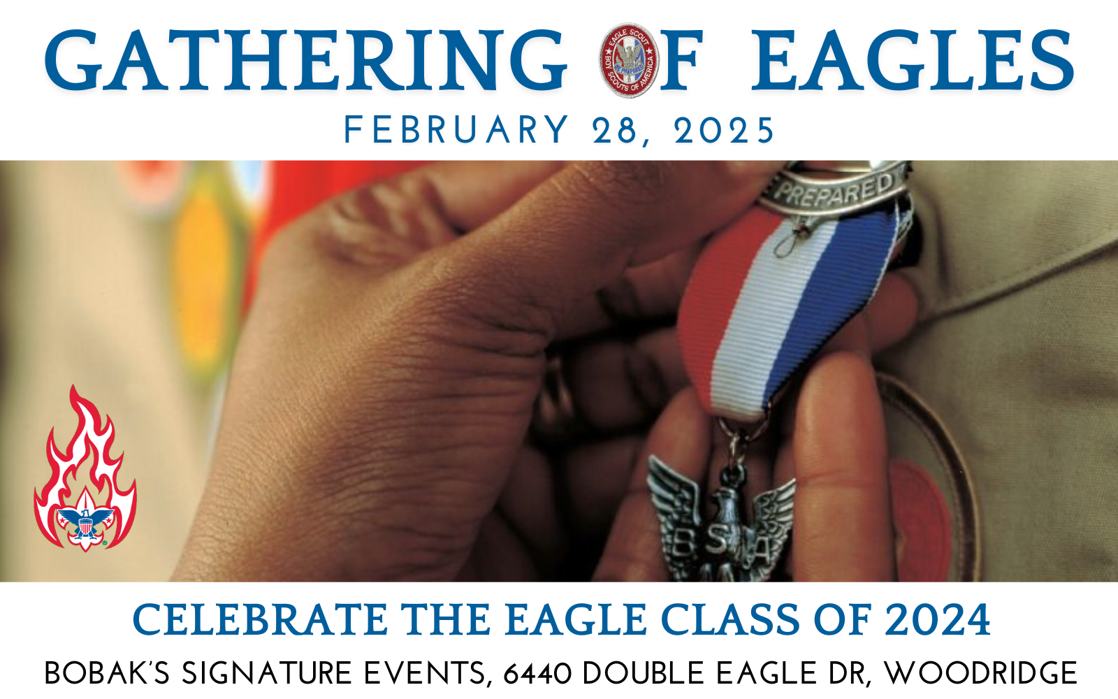Members of the Three Fires Council Chapter of the National Eagle Scout Association & the Eagle Dinner Committee are pleased to hold an outstanding recognition banquet honoring Eagle Scouts from the entire 2024 Three Fires Council Class of Eagles.