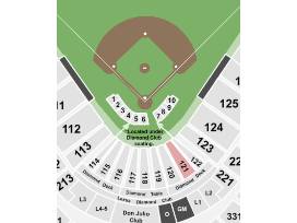 These premium seats are behind home plate (Section 121, Row C, Seats 3, 4, 5 and Section 121, Row D, Seats 3, 4 and 5) where you and your guests will be in the center of the action! These seats have access to VIP lounge (food not included).