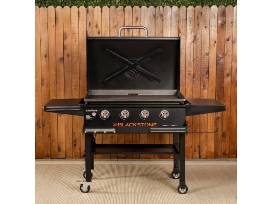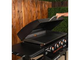 Be the grill master this summer with this Blackstone 36 in. griddle with hinged hood, front shelf and soft cover.