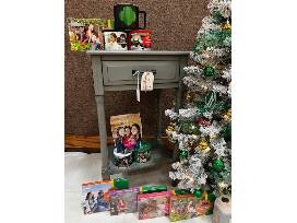 Leave your cookies for Santa on this beautiful light gray side table. The table has a single storage drawer and comes with the beautiful decorative clock.