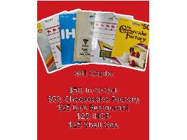 - Gift cards to restaurants & Shell gas