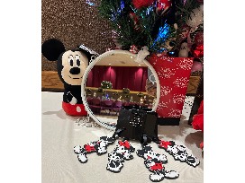 This Disneyland themed Christmas tree is beautifully embellished with a variety of decorations, sparkling lights and festive ornaments. The top of the tree includes a large shimmering ornament with a $250.00 Disney Gift Card. Hanging out in the tree, you'll find Mickey and Minnie plush dolls adding that magical touch. Finally, the base of the tree is adorned with a festively wrapped box that is filled with more Disney memorabilia - blankets & luggage tags, creating lasting memories for bidders of all ages.