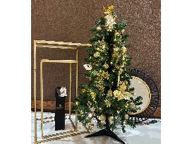 This beautifully decorated tree also comes with 2 beautiful gold side tables and a black and gold mirror.