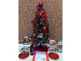 Along with the tree, you will get a bottle of Chateau Souverain bourbon barrel aged cabernet sauvignon wine and two plates for appetizers, dessert in front of the fire, or cookies for Santa.