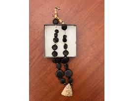 1Lava beads, black coral beads, and brown beads of betel nut.