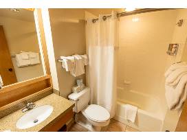 A heated outdoor pool, indoor hot tub, steam room, workout facility, and men's and women's dry sauna are open year-round.