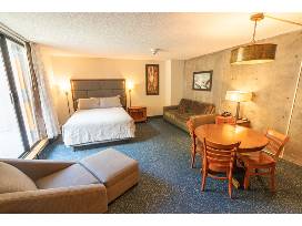 The Iron Blosam Lodge, Snowbird's premier timeshare development, provides everything needed for a successful vacation. This shared-ownership condominium lodge offers an outdoor pool, indoor hot tub, fitness center, restaurant, and lounge.
