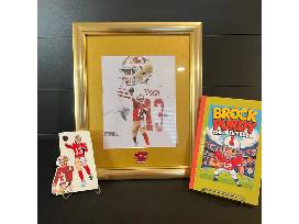 - Custom framed 13" x 16" photo of Brock Purdy. The display frame also includes a 5X Super Bowl Championship Pin. Please note, the display is unsigned.