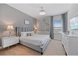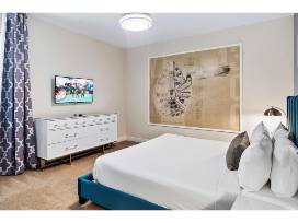 Located just 10 minutes from Disney World, "Patently Perfect" is an exquisite retreat in the prestigious Encore community that offers the perfect blend of comfort, elegance, and convenience. The home features 6 well-appointed bedrooms, 5 bathrooms, a gourmet kitchen with top-of-the-line appliances and seating for the whole family, and ample living space for entertaining guests. The primary suite is a true sanctuary, complete with a king-size bed, private sitting area, and spa-inspired en-suite bathroom with a soaking tub, walk-in shower, and dual vanity sinks. Each additional bedroom is thoughtfully designed to ensure comfort and relaxation for every guest. Outdoors, the inviting patio and pool area, framed by lush landscaping, provide a peaceful escape for alfresco dining and family splash fun in the sun! To add a touch of magic is a $500 Disney gift card, Mickey Mouse ears, a Disney-inspired laser engraved water bottle, and Disney ornament. Pack up the family and get ready to go see the Mouse for a week of unforgettable adventures!