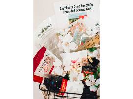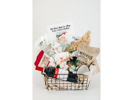Get ready to experience local flavors with this curated collection of farm-to-table goodies. This basket is packed with a selection of Virginia's finest, chosen to showcase the area's bounty. Sharpen your culinary skills with a class at Powhatan's Hobby Hill Farm - offering instruction in the making of cheese, artisanal bread, and fresh pasta to name a few. Experience the joy of a Celeste Farms dining experience where you and a guest will partake in a farm fresh dinner that celebrates seasonal ingredients. Bring wholesome ingredients into your own home with USDA grass fed beef (85/15) from Over the Moon Farm (no steroids or antibiotics, approximately 20 lbs.). For pre-dinner snacking, enjoy Savannah Grace cheese straws, Whitley's peanuts, local honey from Labrador Acres, and Sijang Garlic Chili Crunch Sauce. A Virginia cutting board, tea towel, and scrub brush round out this beautiful basket.