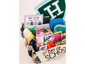 It's a back-to-school BONANZA! Start next school year off right with this basket packed with everything needed to head back to class in style and confidence! Choose the perfect backpack for your student with a $100 gift card to State, known for their durable and stylish designs. Get uniform ready with a $75 Lands' End gift card. A pencil pouch, pencils, and other assorted school supplies will give you a head start on school supply lists. While fresh supplies are satisfying, back-to-school accoutrements bring the fun! Hydration is a must so adorn your child's backpack with decorative chapstick holders and Chapstick and laser engraved Owala water bottles. Jazz up lunch boxes with two new Bento boxes with custom labels. Find personalized school gear and teacher gifts with a $25 Etsy giftcard. When the first day of school arrives, represent Hunter with a custom Hunter banner and bedazzled Hunter headband. And parents, once you drop your darling s off at school, your final assignment is to head to First Watch and enjoy brunch on us with a $50 gift card. Extra credit if you enjoy a mimosa!