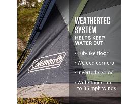 There is plenty of room to stretch inside the spacious interior thanks to the nearly vertical walls that offer 20% more headroom than a traditional Coleman dome tent, and a wide door design means you can move air beds, sleeping bags, and other gear in and out with ease.
