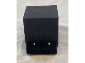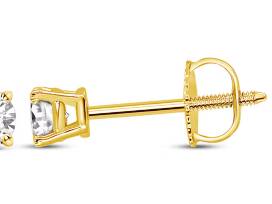 Certified round-cut diamond solitaire stud earrings, 14k yellow gold, total diamond weight 1/4 carat.