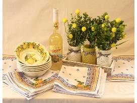 Add a touch of vibrancy to your outdoor patio this summer with this lemon-themed collection. Set includes table runner, eight napkins, six melamine bowls, and mason jar centerpiece.
