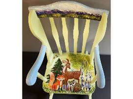 From purple mountains majesty to the creatures in the forest, this children's rocking chair, hand-painted by Barb Midyett, will be a sweet addition to their nursery.