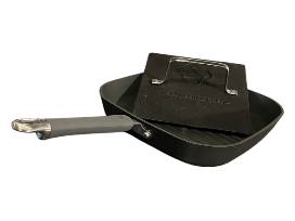 Cast Iron 11" Square Grill Pan with Grill Press: Achieve delicious grill marks and flavor-packed meals year-round. This versatile pan is ideal for searing steaks, grilling vegetables, and even making paninis. The included grill press helps to create even cooking and those coveted grill lines.