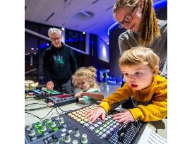 Engage all your senses in our Touch & See Lab with 10,000-year-old fossils, living plants and animals, and more. Wander outside on our green roof and observation deck, and explore the learning landscape of native plants, geology gardens, and solar station.