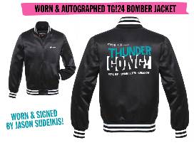 Bid for a chance to win a 2024 Thundergong bomber jacket worn and signed by Jason Sudeikis.